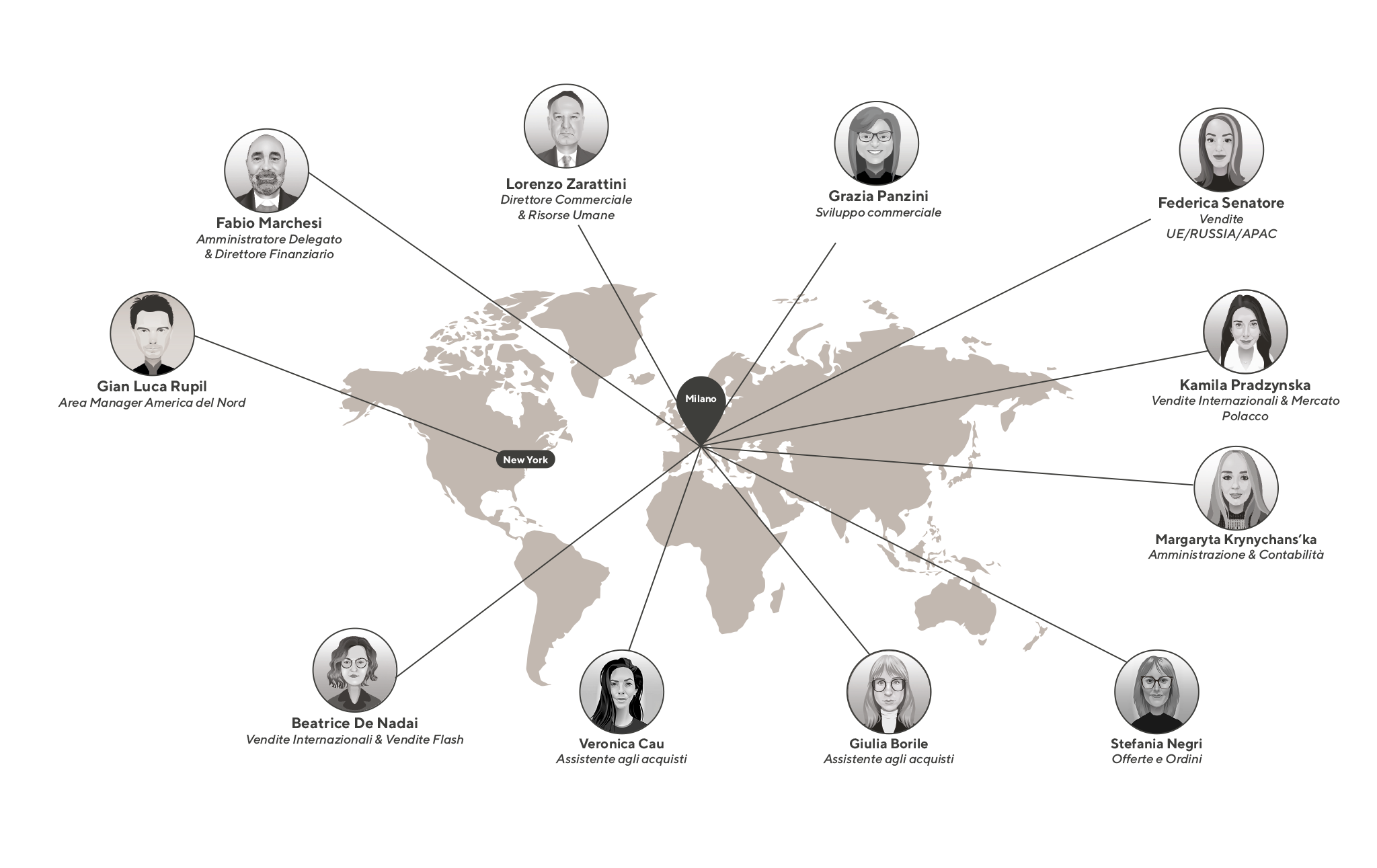 Di stanza a New York, è a capo dello sviluppo commerciale del mercato Nord Americano, sia ricercando nuove offerte di merce in loco, sia ampliando il portafoglio di clienti statunitensi e canadesi